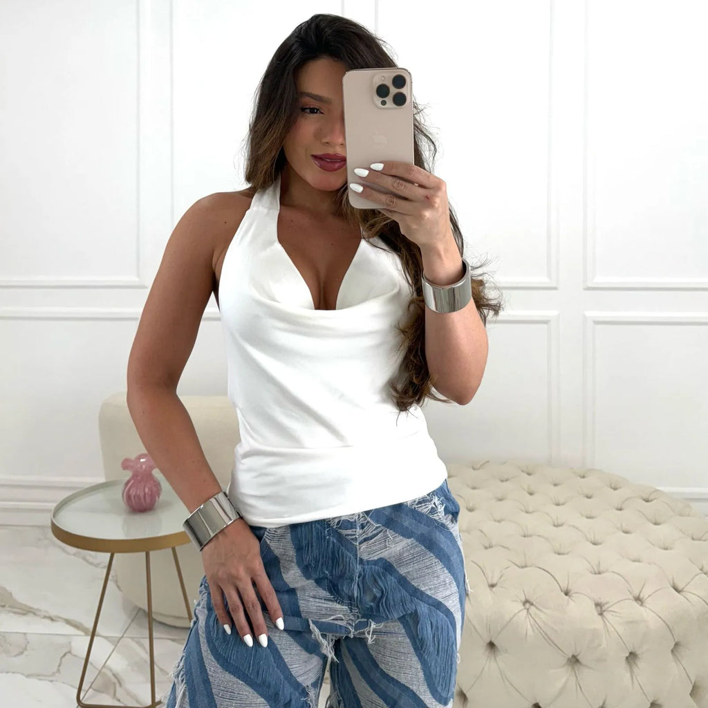 Simples, elegante e cheio de charme! É confeccionada em poliamida, que valoriza o colo e a amarração, trazendo um toque moderno e delicado ao look. Ideal para quem ama se sentir linda com conforto e estilo!