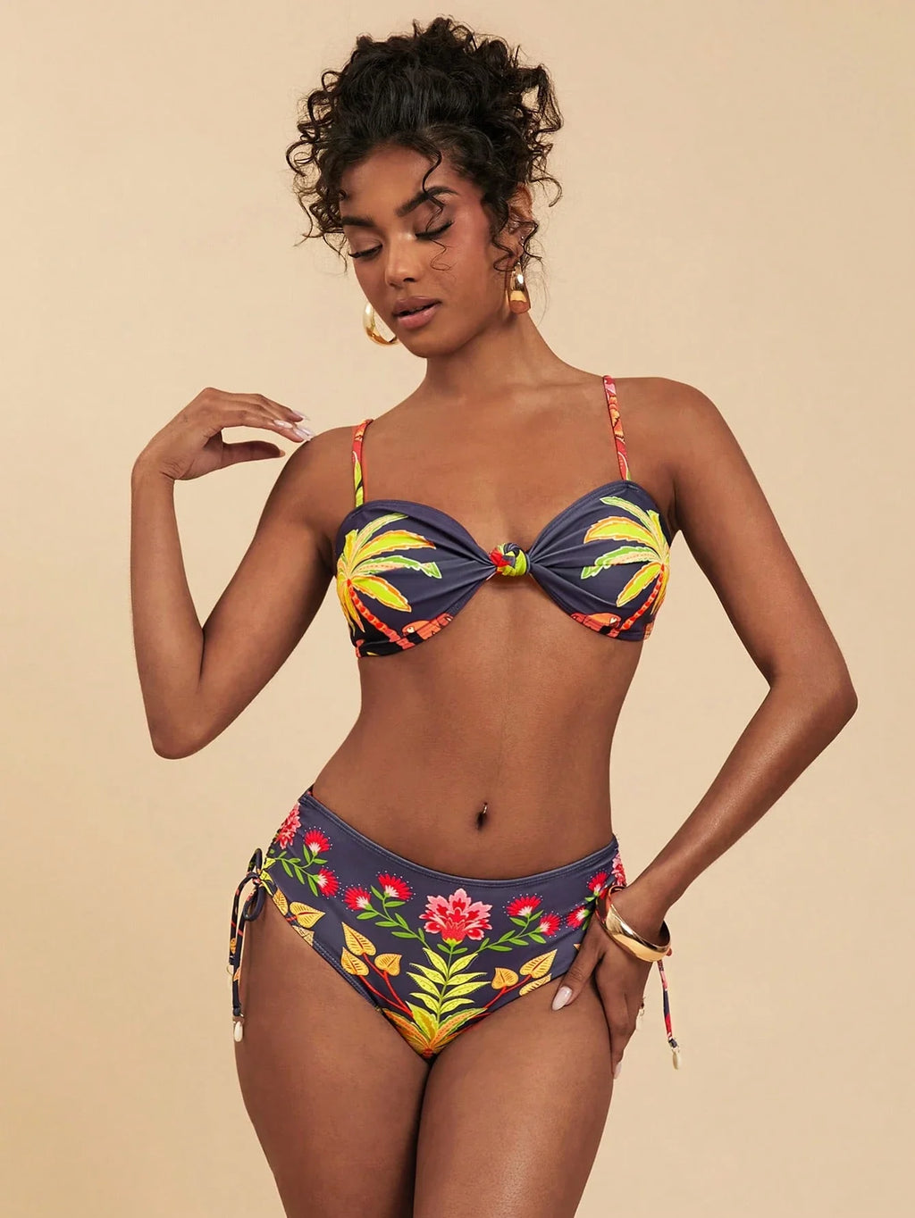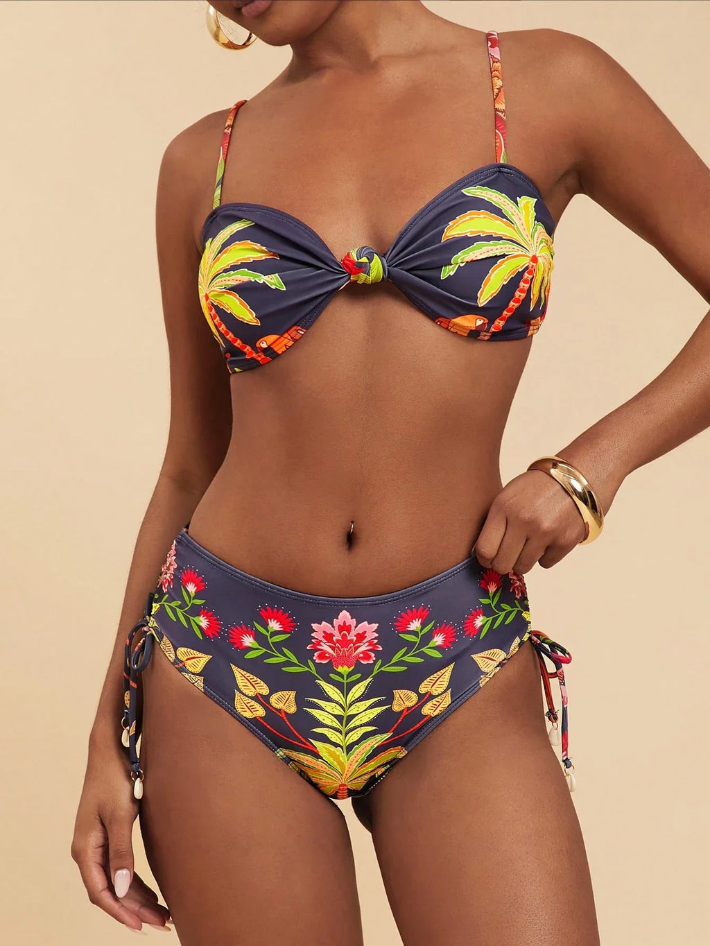 ✅ Design tropical: Estampa de plantas, detalhe torcido, nó e costas nuas, trazendo um visual leve e estiloso para os dias de praia.