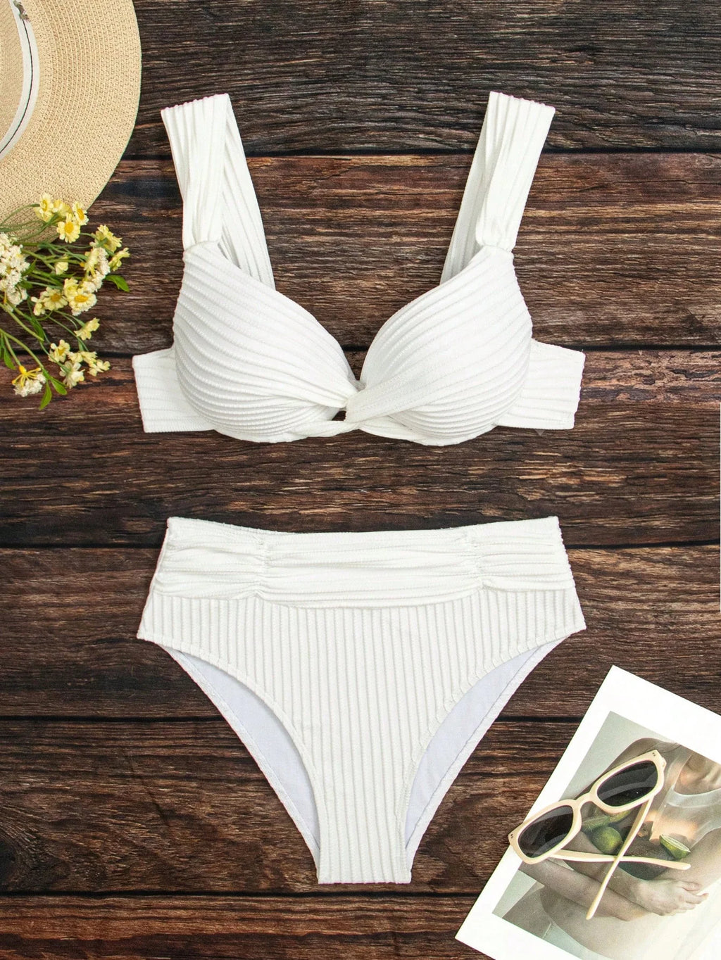 ✅ Design elegante e sofisticado: Modelo com detalhes enrugados, torcido e peça em V, trazendo um visual moderno e diferenciado.