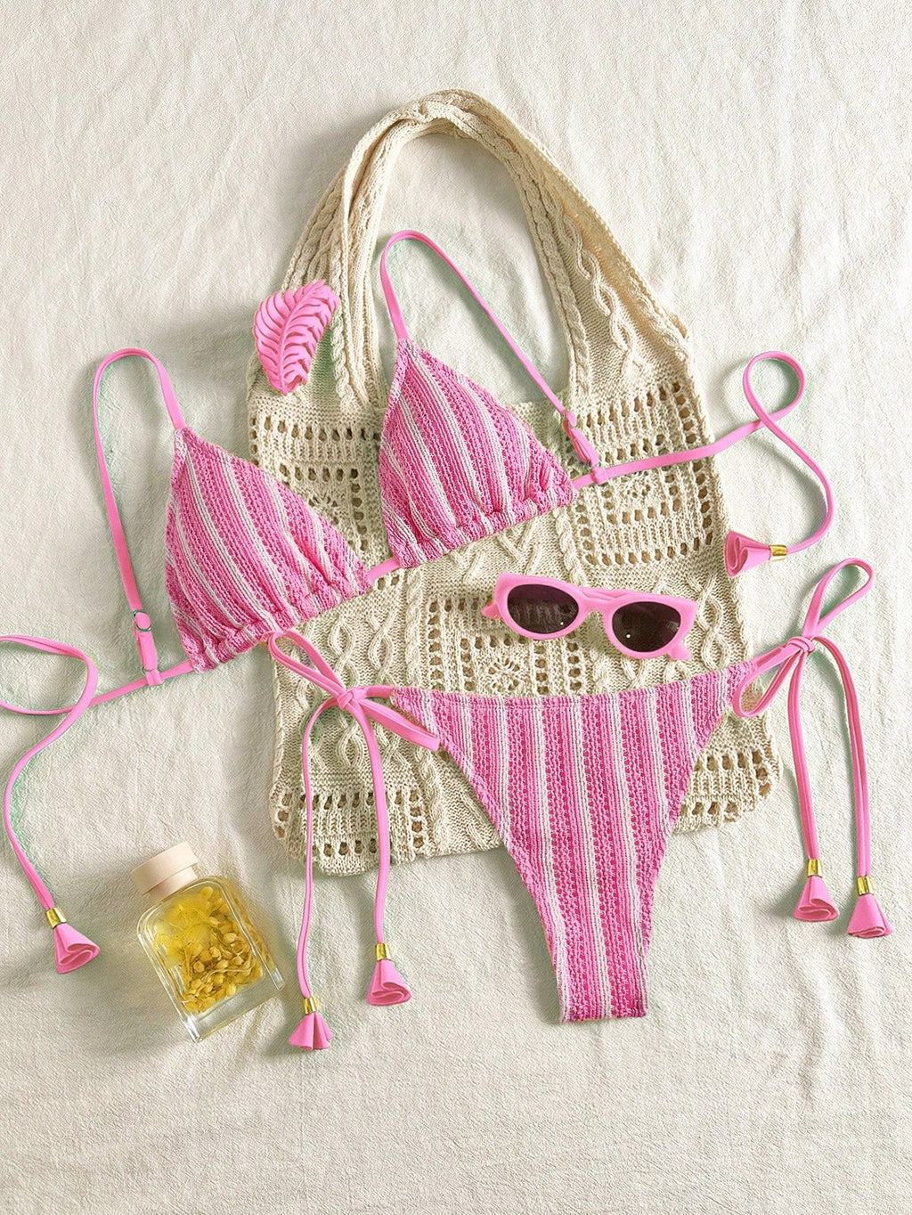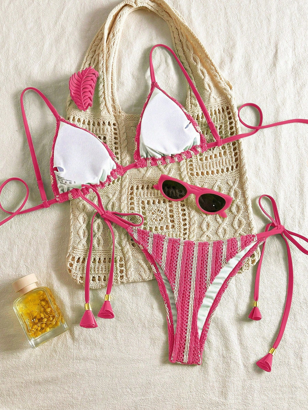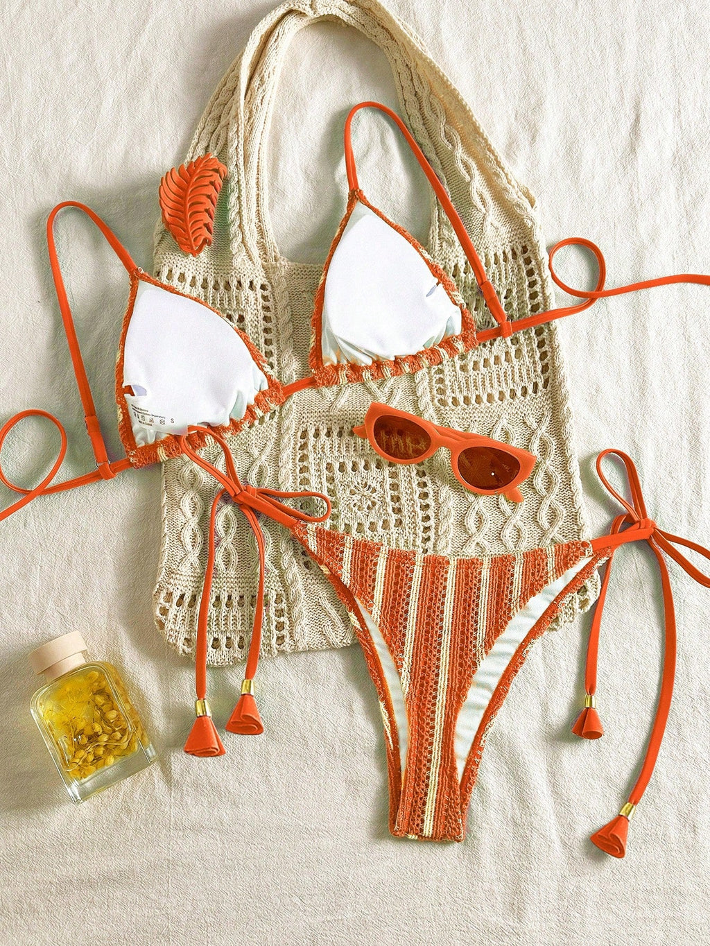 ✅ Design sensual e moderno: Top com taças em formato de triângulo, gola V profunda, detalhe de nó e amarração nas costas (tie back).
