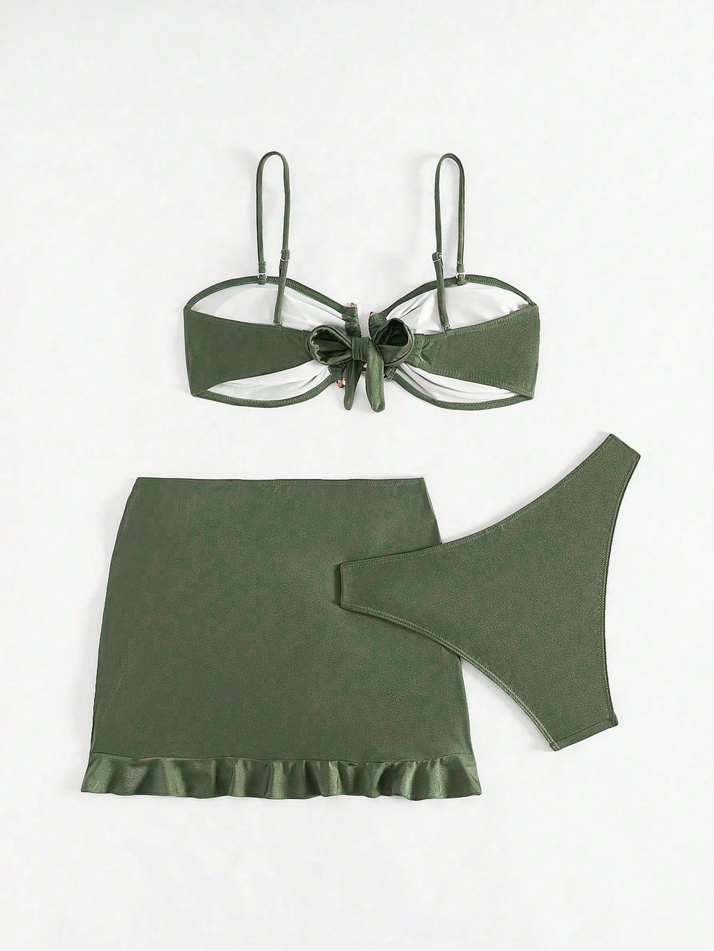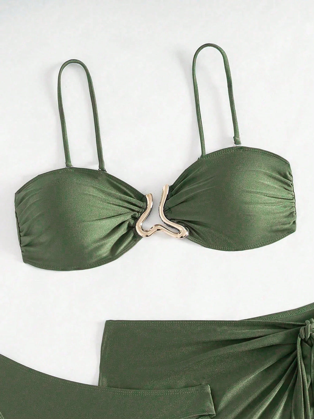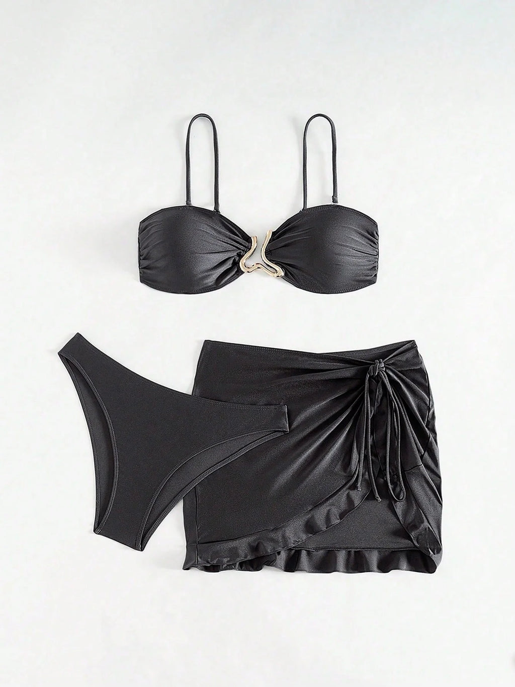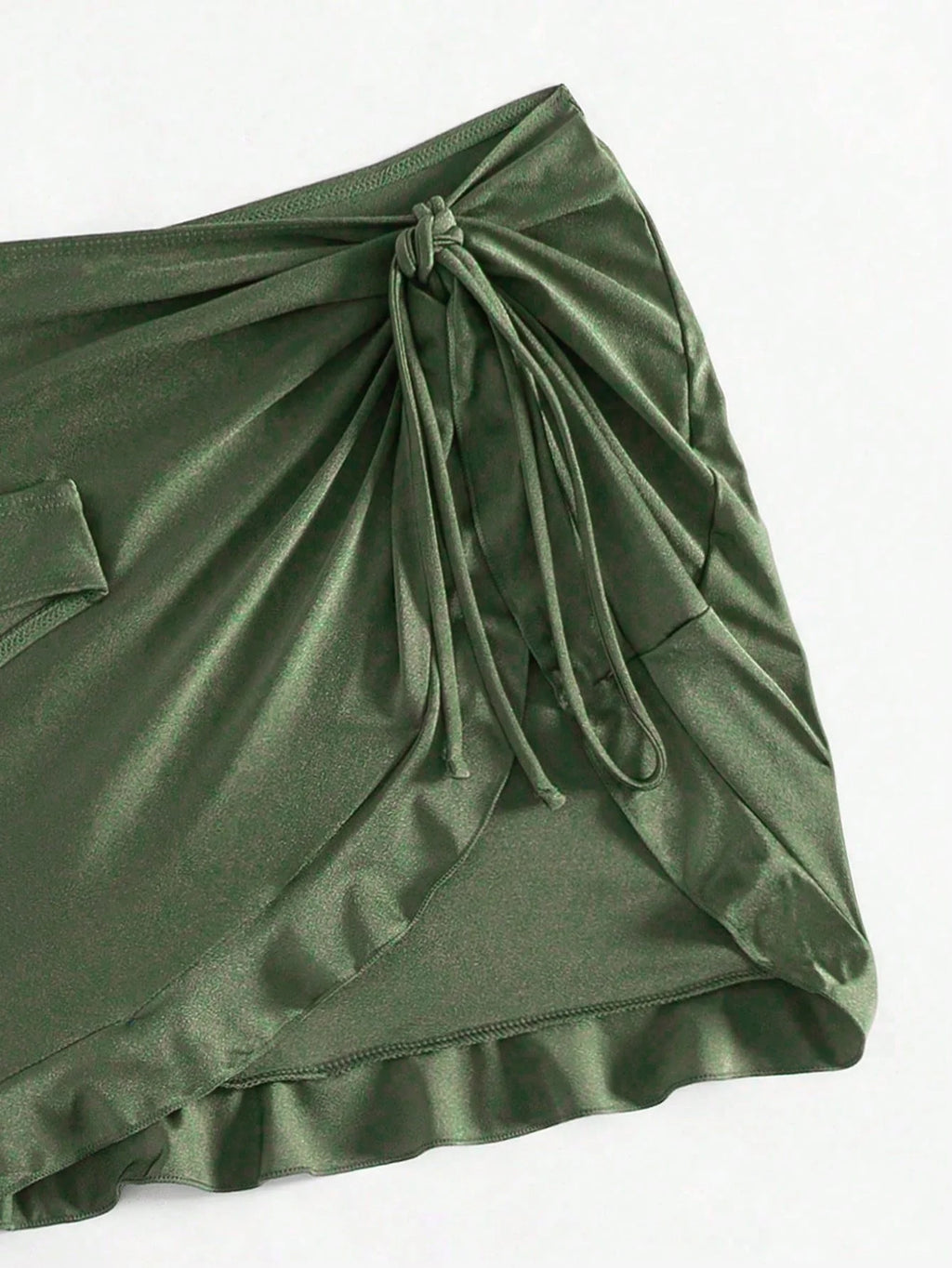 ✅ Conjunto de 3 peças com top bandeau, calcinha e saia para um visual completo