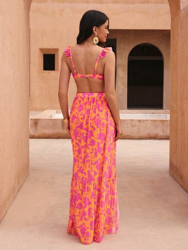 - Estampa: Tropical/ Plantas/ Rosa + Salmão
